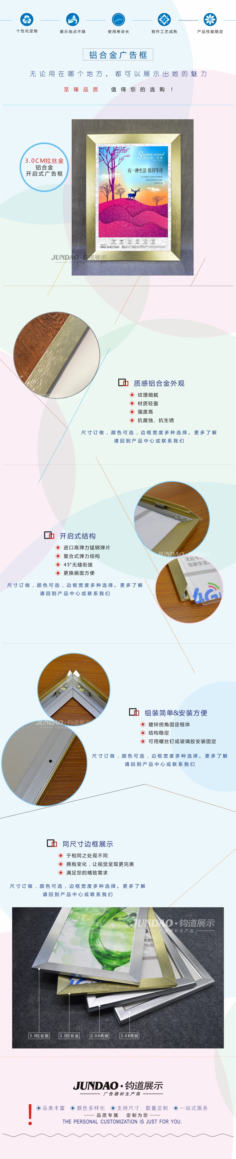 钧道3cmM拉丝金 前开启式 铝合金框 海报框架