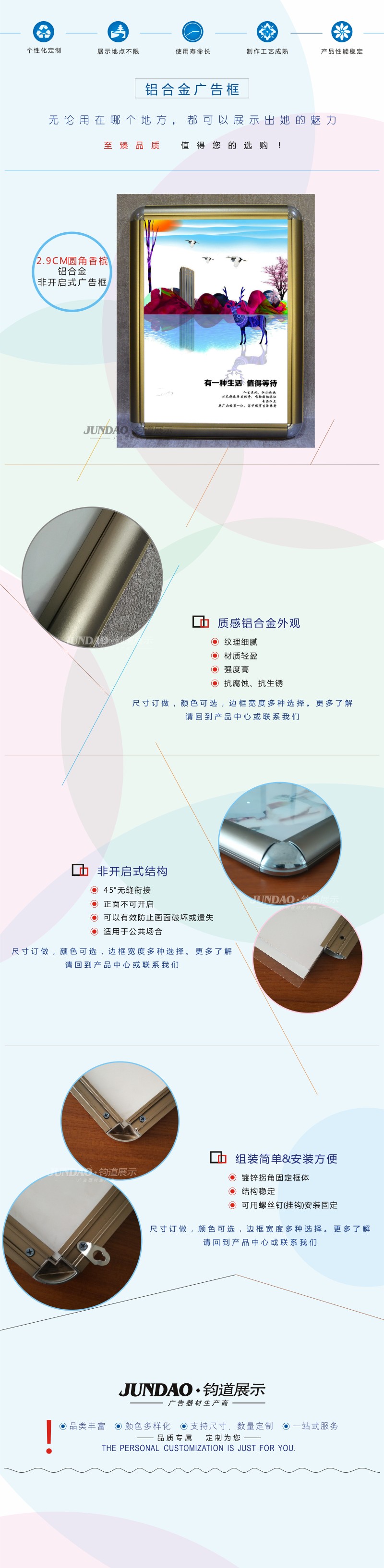2.9CM香槟圆角非开启式铝合金海报板 相框镜框