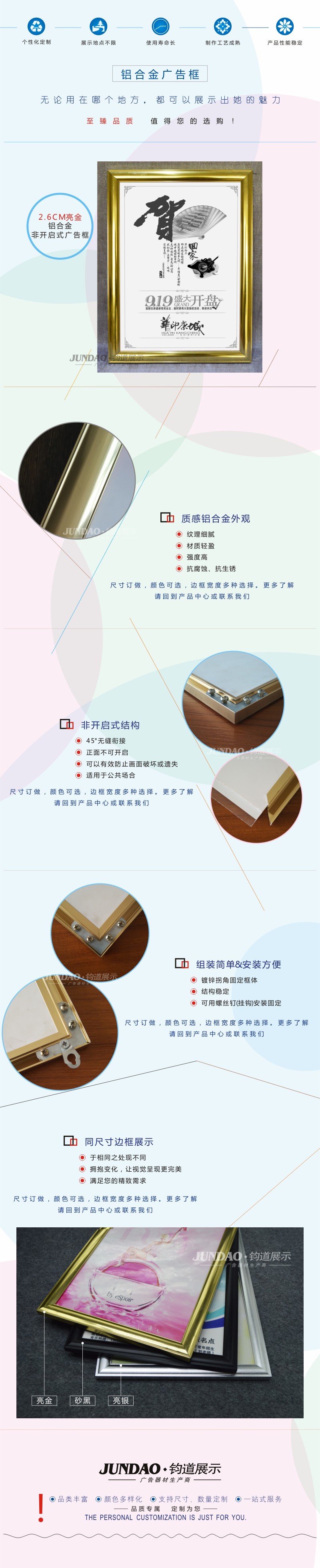 2.6CM金色开启式广告框/铝合金广告框加工