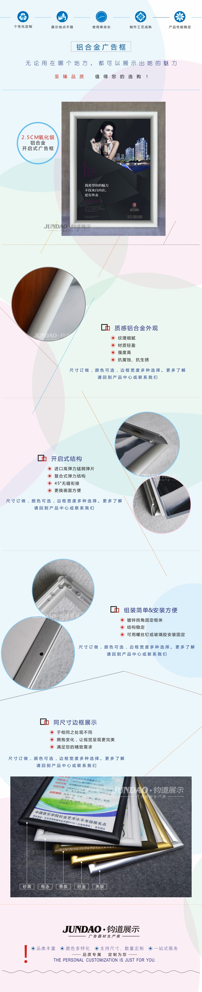 2.5CM开启式氧化银铝合金广告框,订做广告铝框厂
