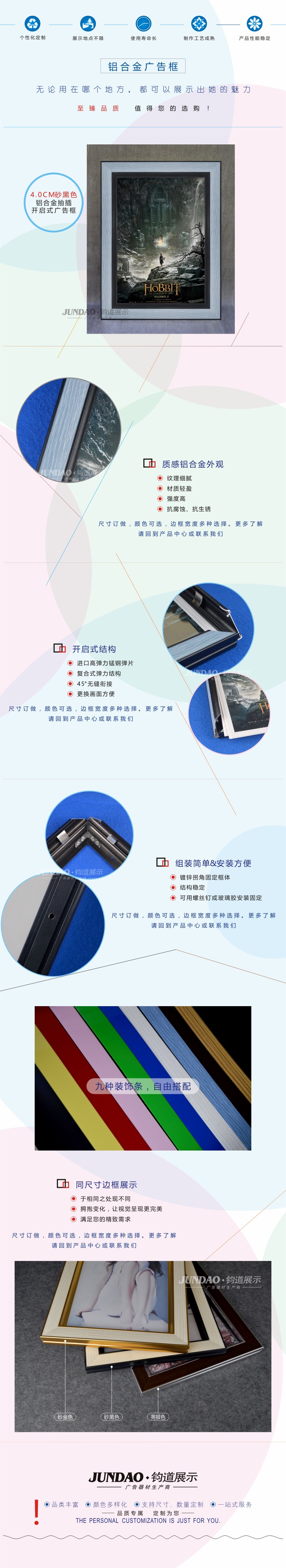 4.0CM砂黑色松花蓝铝合金抽插式开启式广告框