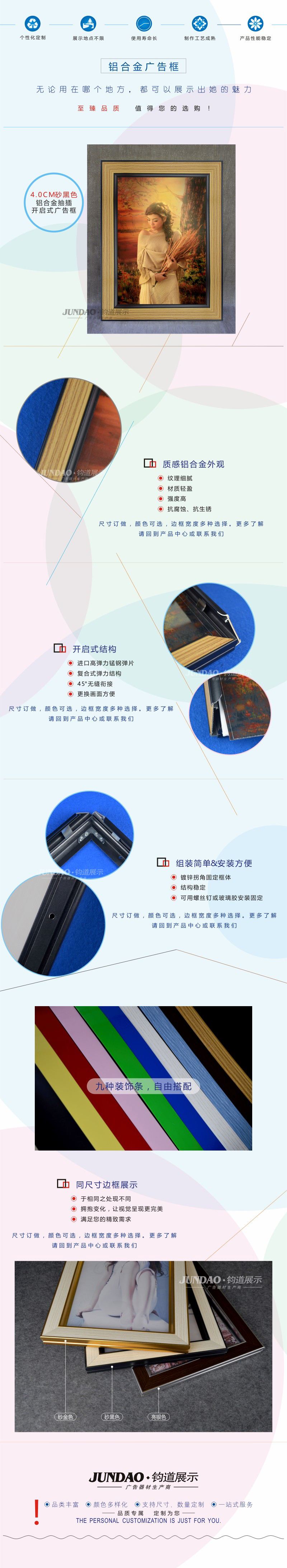 4.0CM砂黑色琥珀杏铝合金抽插式开启式广告框