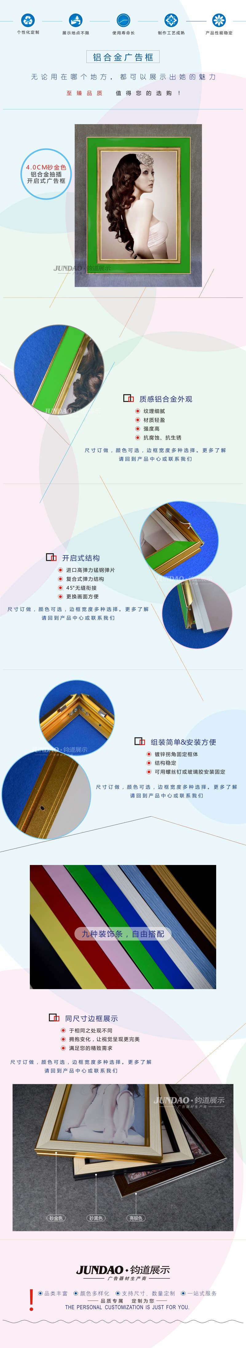 4.0CM砂金色油绿可开启抽插式广告框