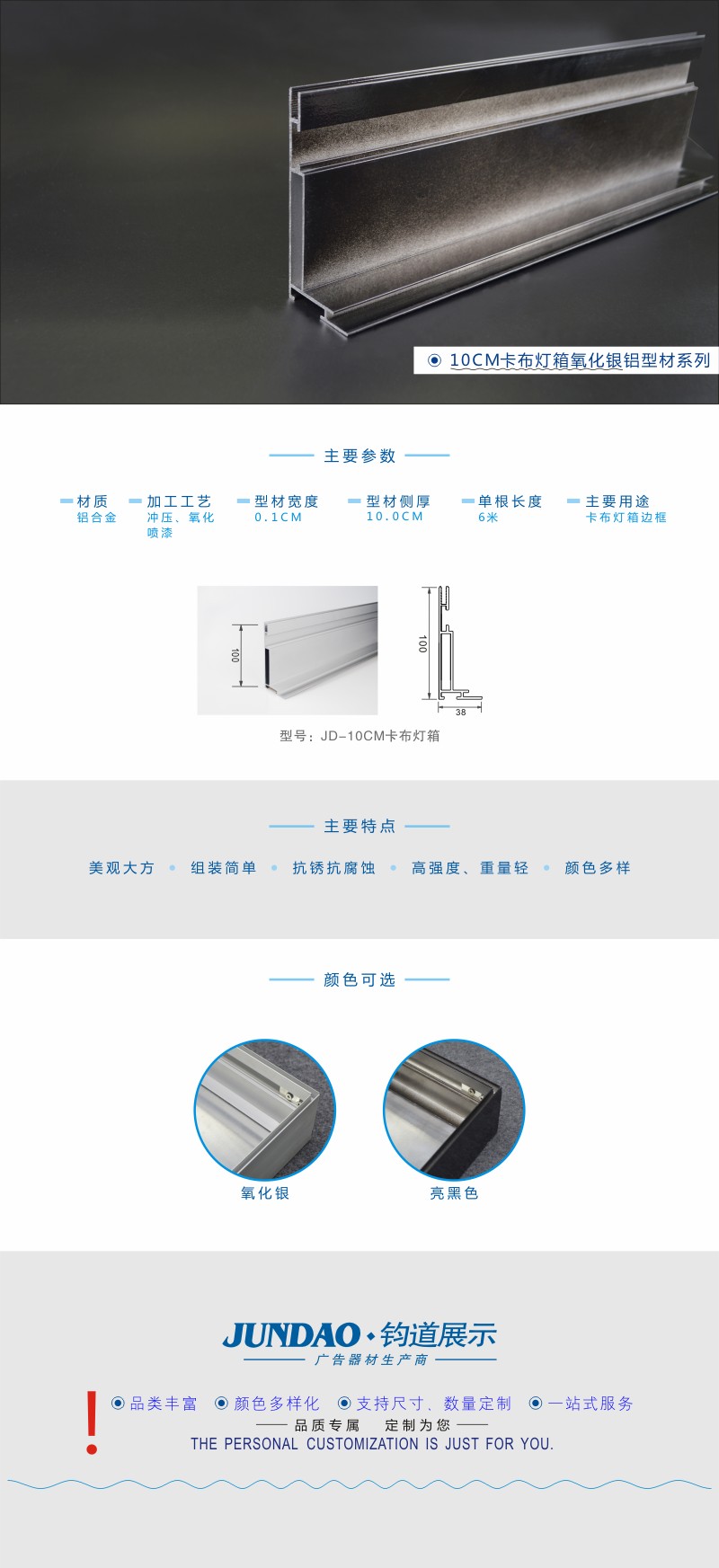10CM亮黑色卡布灯箱型材