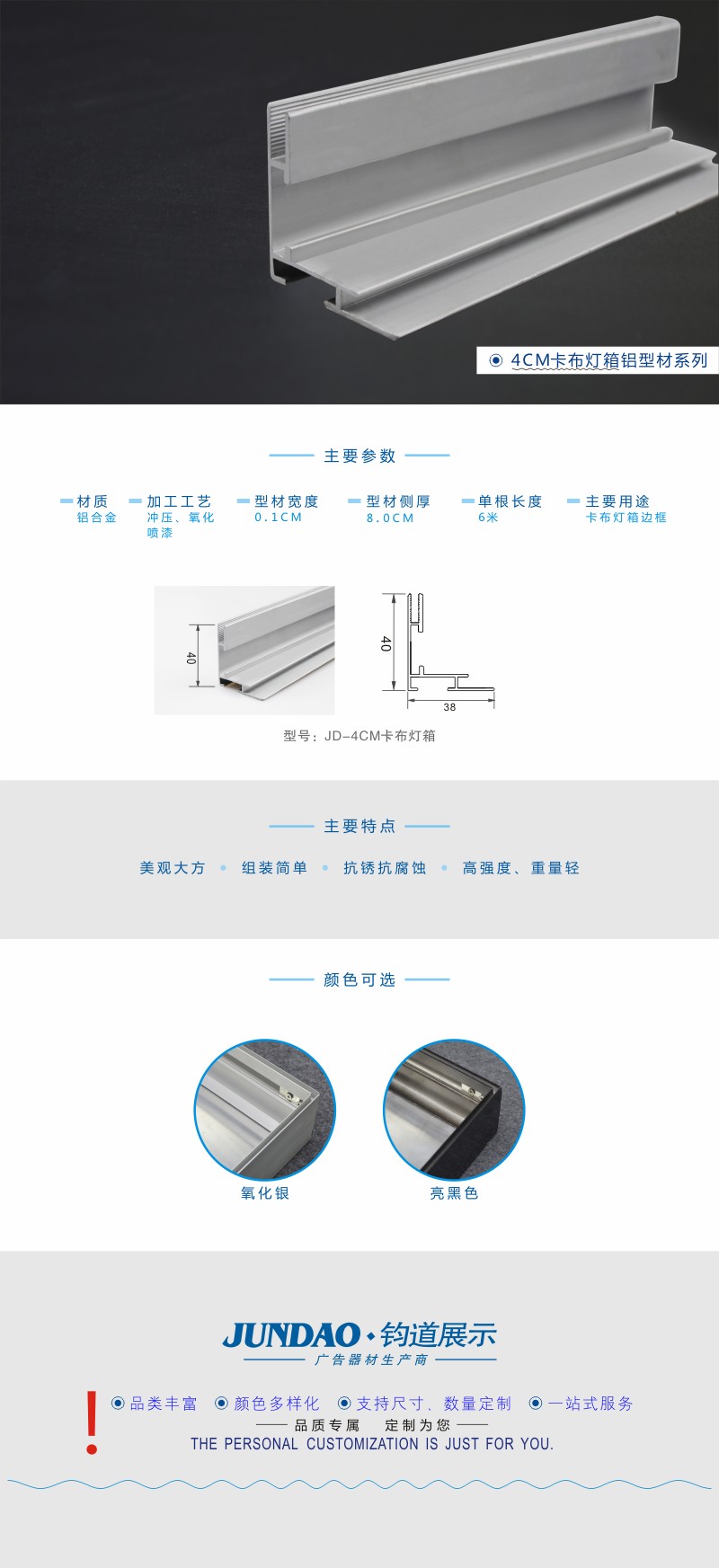 4CM氧化银卡布灯箱型材