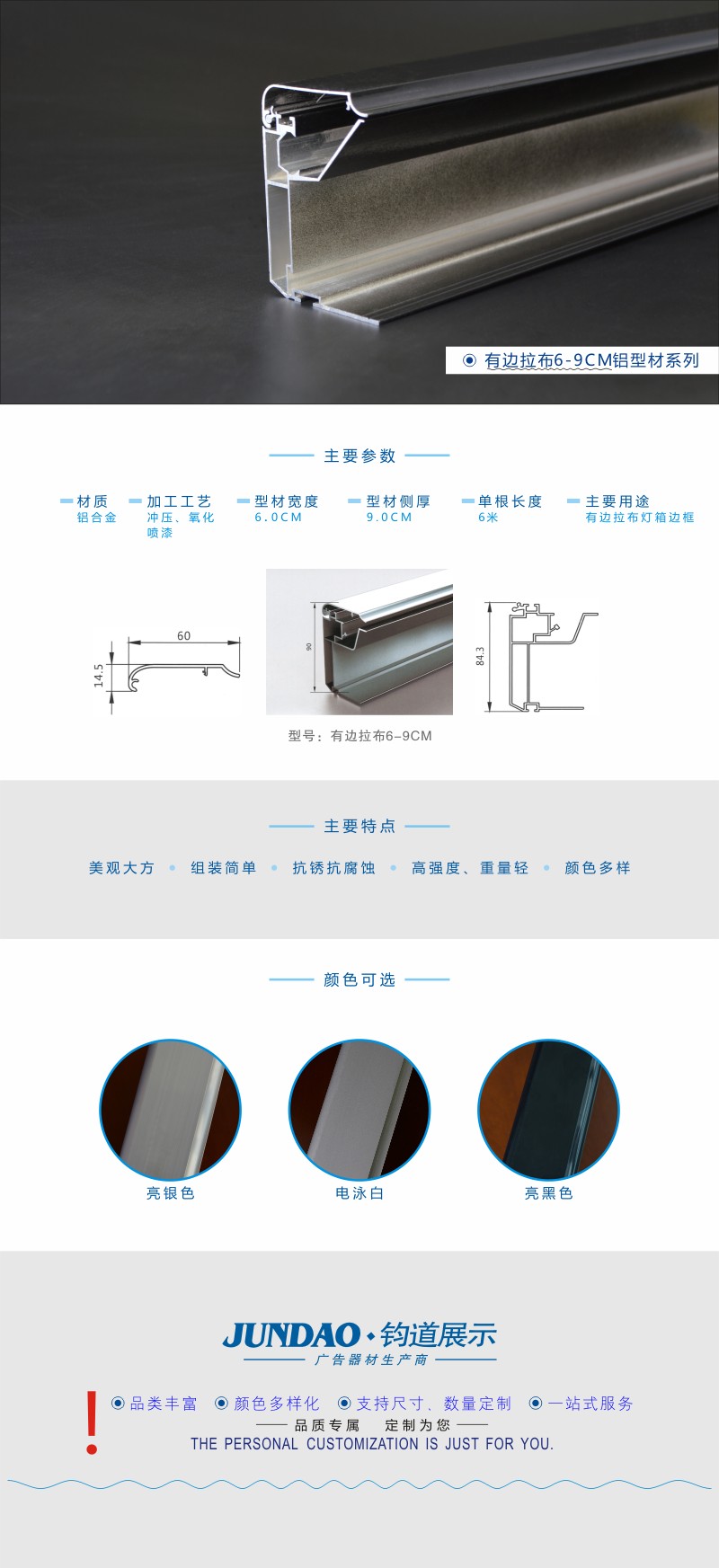 6-9CM亮黑色有边拉布灯箱型材/灯箱型材