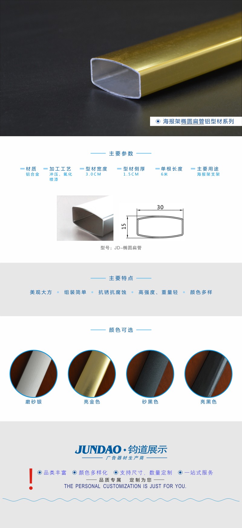 1.5-3CM亮金色椭圆扁管/海报架型材