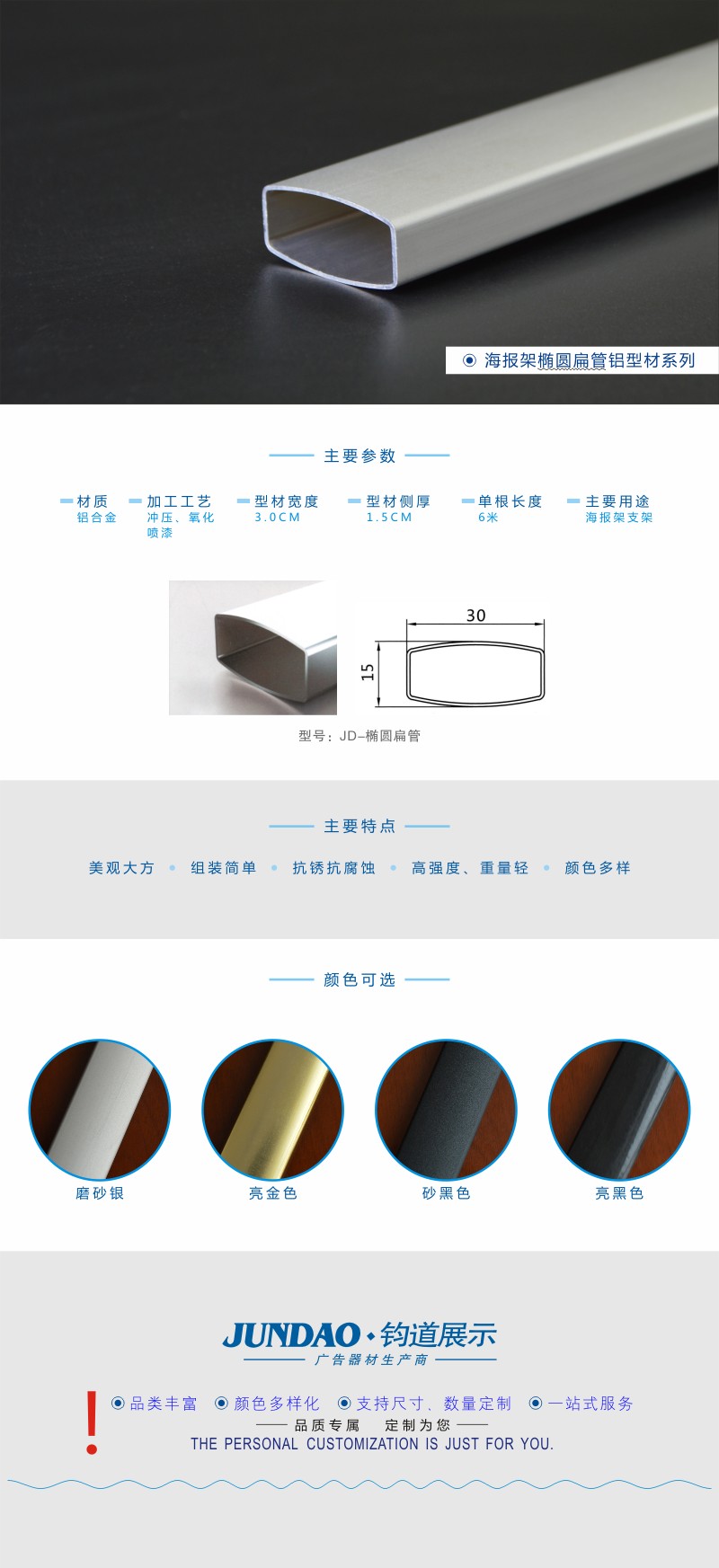 JD海报架椭圆方管/海报架型材