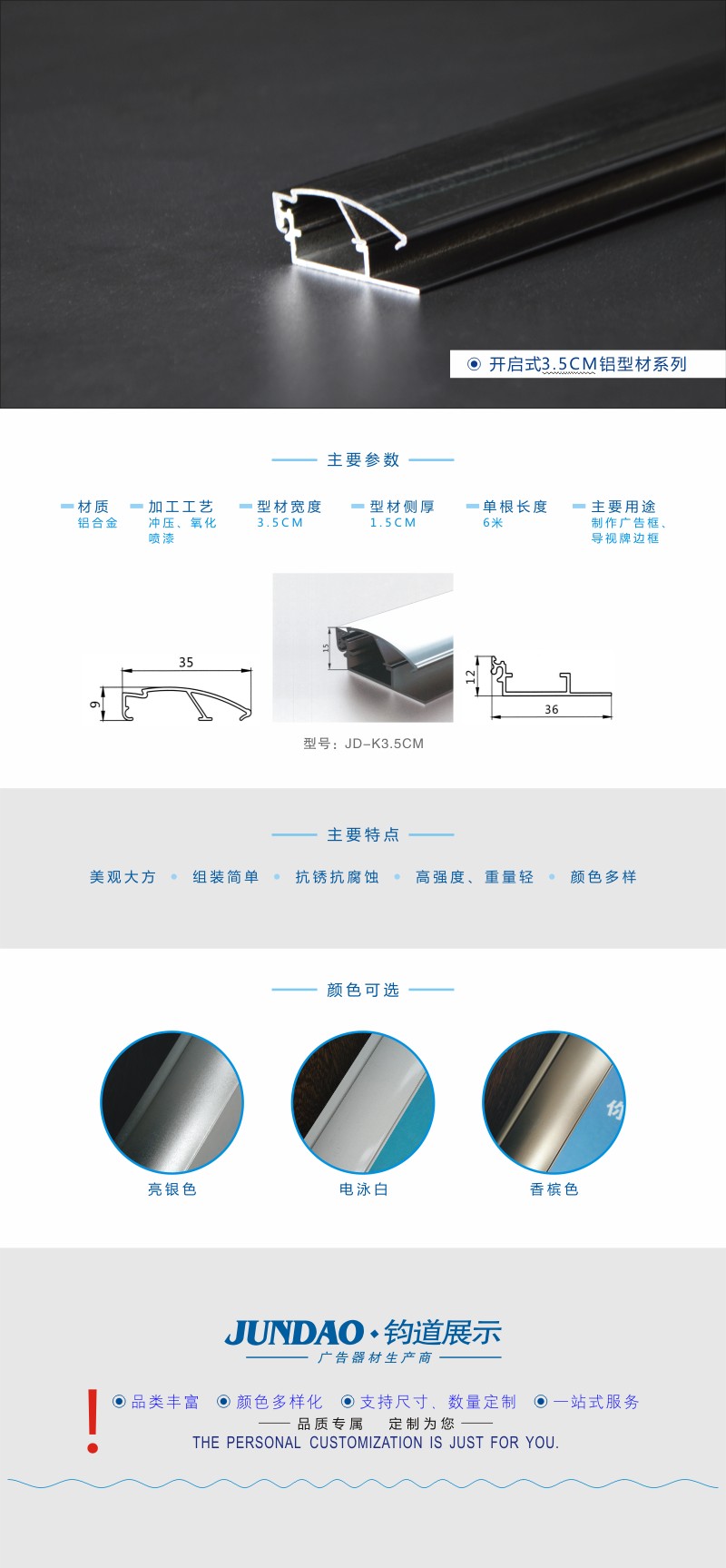 3.5CM亮黑色广告型材/广告铝材加工