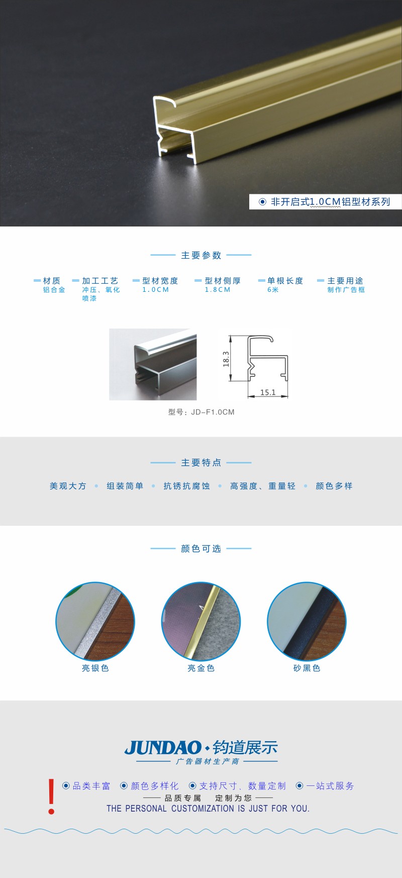 1.0CM非开启亮金色广告框型材/铝合金框型材