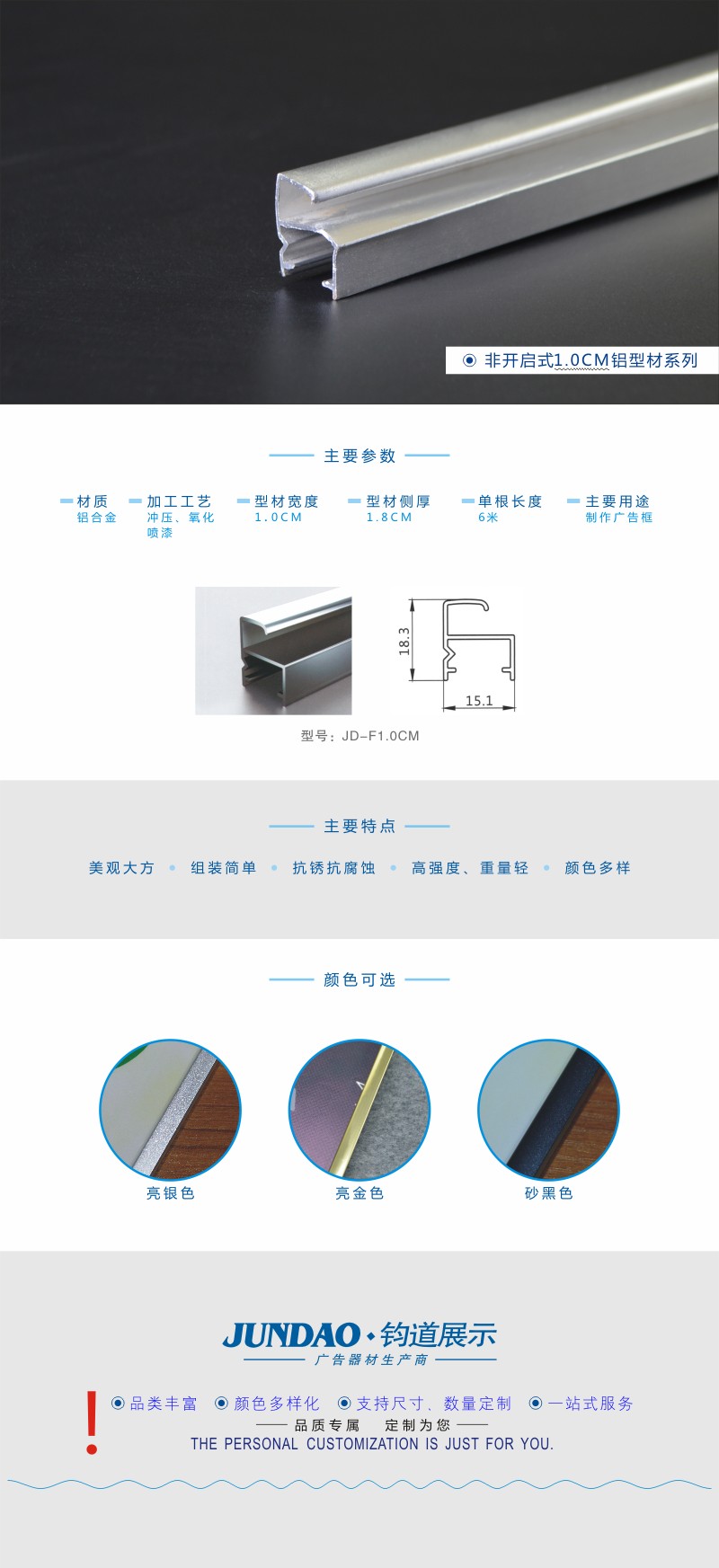 JD-1.0CM非开启广告铝型材/广告型材加工