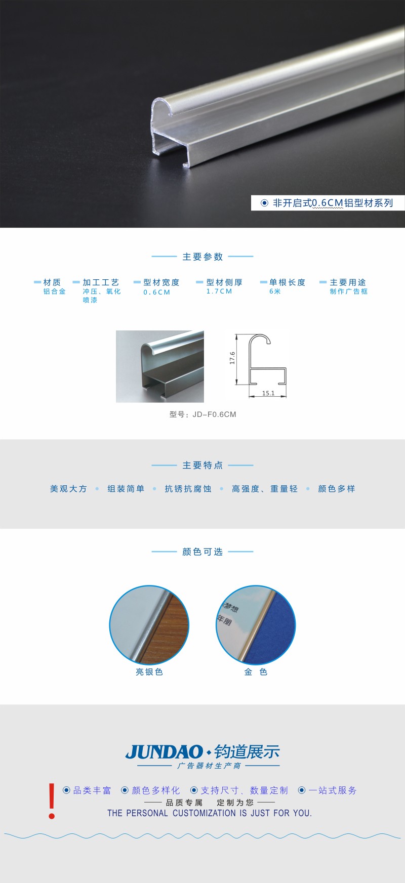 JD-0.6CM非开启广告铝型材/边框型材