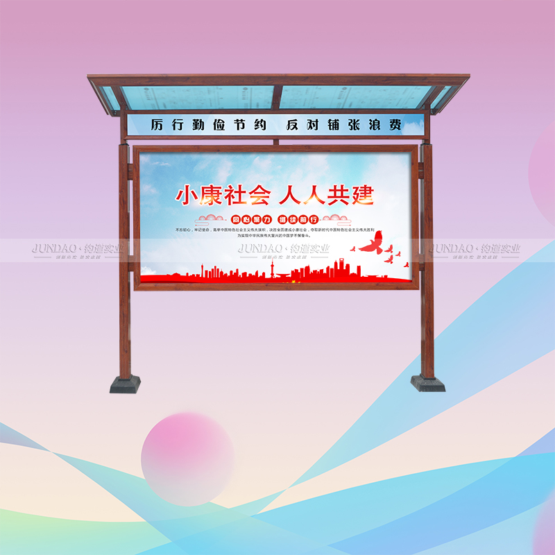 河南钧道实业有限公司主营:铝合金户外带雨棚宣传栏、垃圾分类亭、挂墙报栏、移动展架、广告铝框、可折叠海报架、灯杆道旗、带造型灯杆灯箱、标识牌、花草牌等成品。