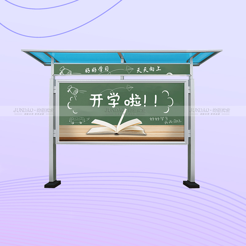 河南钧道实业有限公司主营:铝合金户外带雨棚宣传栏、垃圾分类亭、挂墙报栏、移动展架、广告铝框、可折叠海报架、灯杆道旗、带造型灯杆灯箱、标识牌、花草牌等成品。