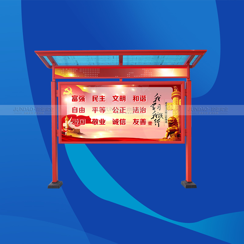 河南钧道实业有限公司主营:铝合金户外带雨棚宣传栏、垃圾分类亭、挂墙报栏、移动展架、广告铝框、可折叠海报架、灯杆道旗、带造型灯杆灯箱、标识牌、花草牌等成品。