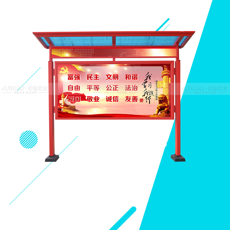 河南钧道实业有限公司主营:铝合金户外带雨棚宣传栏、垃圾分类亭、挂墙报栏、移动展架、广告铝框、可折叠海报架、灯杆道旗、带造型灯杆灯箱、标识牌、花草牌等成品。