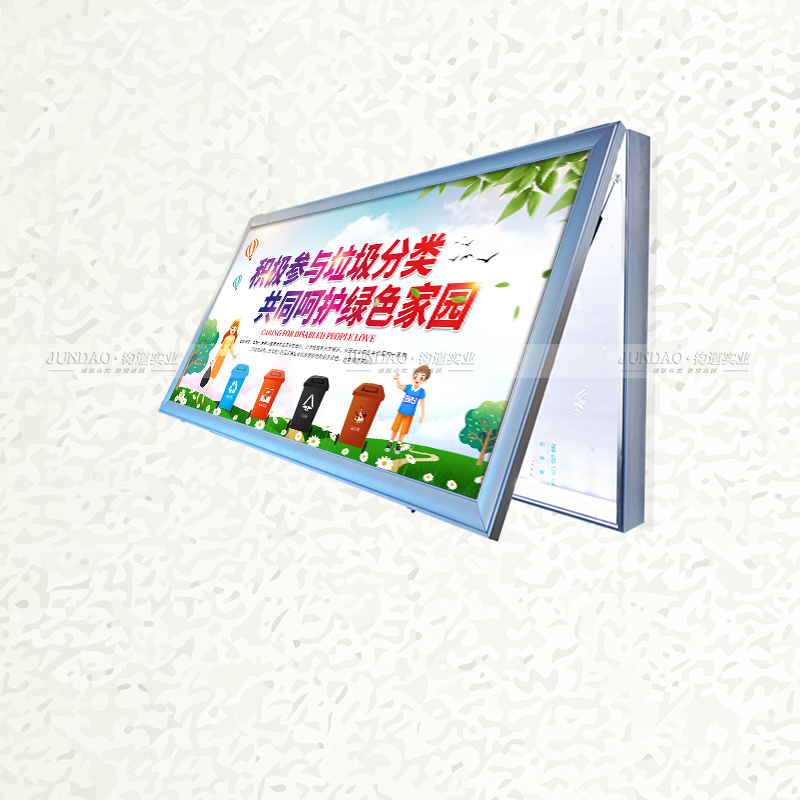 河南钧道实业有限公司主营:铝合金户外带雨棚宣传栏、垃圾分类亭、挂墙报栏、移动展架、广告铝框、可折叠海报架、灯杆道旗、带造型灯杆灯箱、标识牌、花草牌等成品。