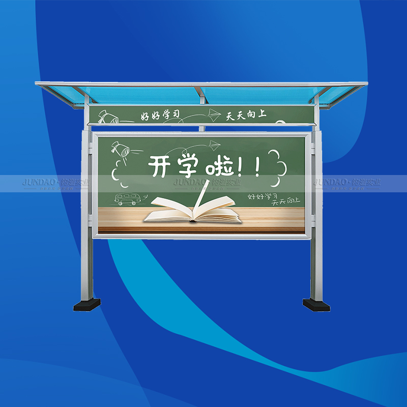 河南钧道实业有限公司主营:铝合金户外带雨棚宣传栏、垃圾分类亭、挂墙报栏、移动展架、广告铝框、可折叠海报架、灯杆道旗、带造型灯杆灯箱、标识牌、花草牌等成品。