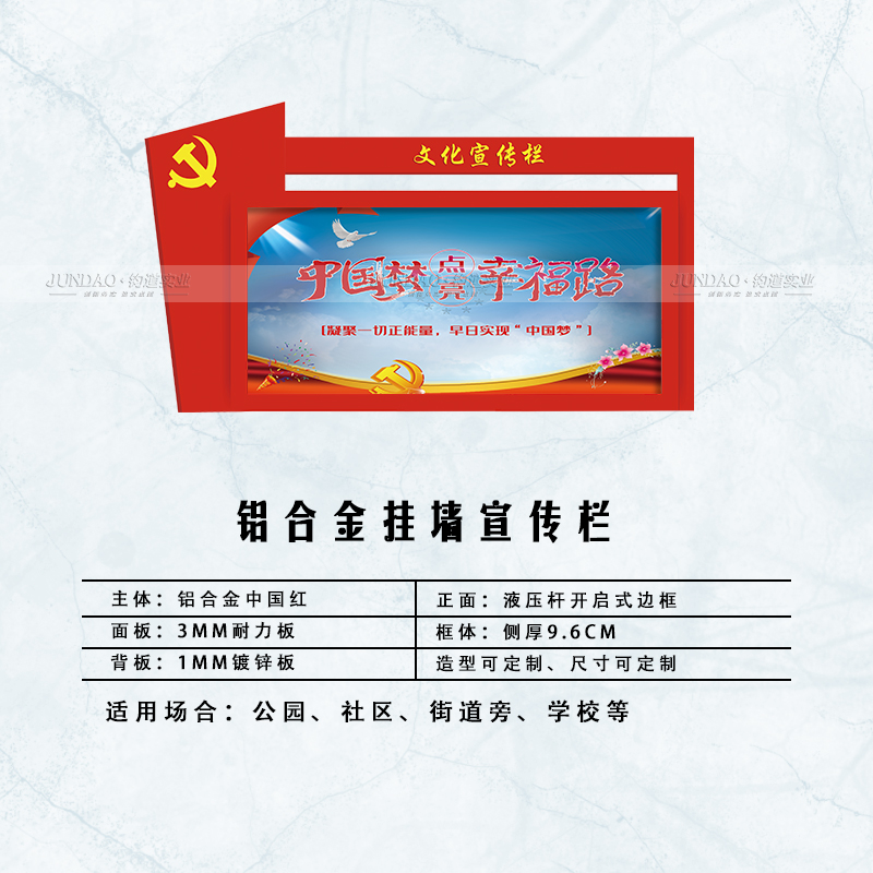 河南钧道实业有限公司主营:铝合金户外带雨棚宣传栏、垃圾分类亭、挂墙报栏、移动展架、广告铝框、可折叠海报架、灯杆道旗、带造型灯杆灯箱、标识牌、花草牌等成品。