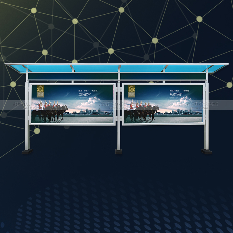 河南钧道实业有限公司主营:铝合金户外带雨棚宣传栏、垃圾分类亭、挂墙报栏、移动展架、广告铝框、可折叠海报架、灯杆道旗、带造型灯杆灯箱、标识牌、花草牌等成品。