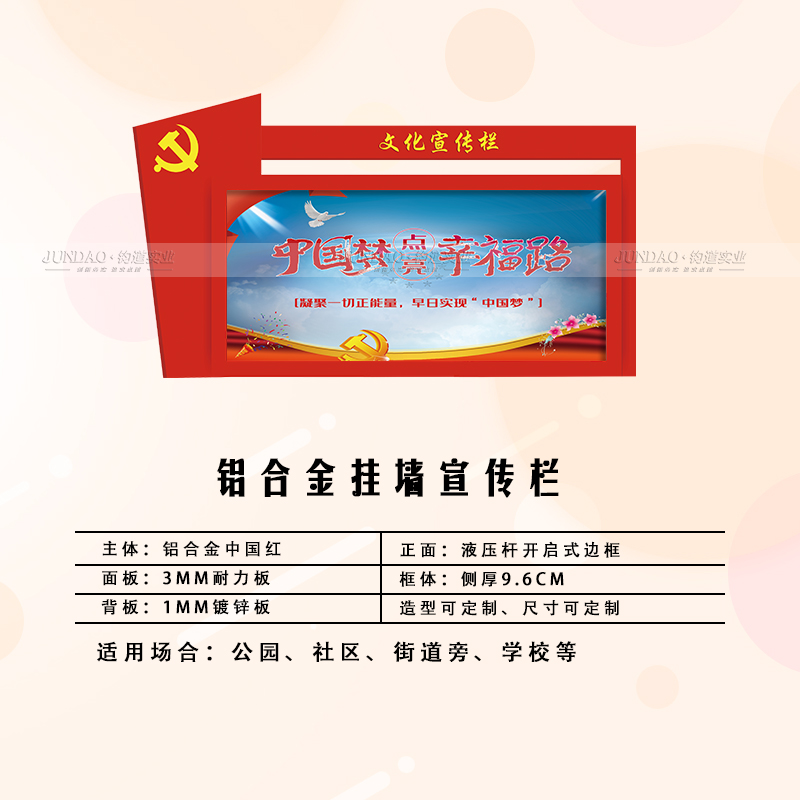 河南钧道实业有限公司主营:铝合金户外带雨棚宣传栏、垃圾分类亭、挂墙报栏、移动展架、广告铝框、可折叠海报架、灯杆道旗、带造型灯杆灯箱、标识牌、花草牌等成品。
