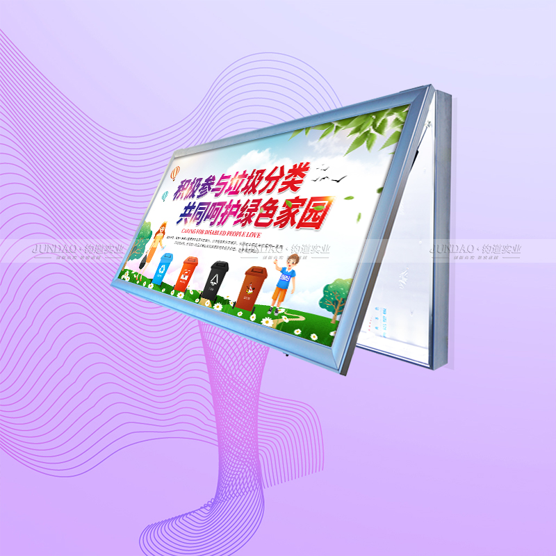 河南钧道实业有限公司主营:铝合金户外带雨棚宣传栏、垃圾分类亭、挂墙报栏、移动展架、广告铝框、可折叠海报架、灯杆道旗、带造型灯杆灯箱、标识牌、花草牌等成品。