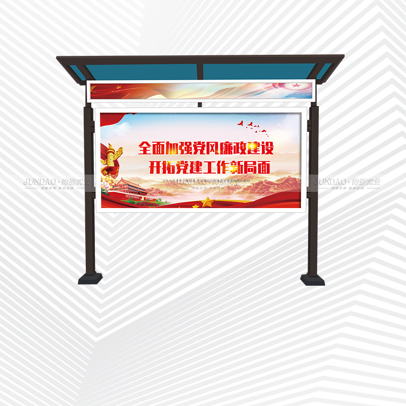 河南钧道实业有限公司主营:铝合金户外带雨棚宣传栏、垃圾分类亭、挂墙报栏、移动展架、广告铝框、可折叠海报架、灯杆道旗、带造型灯杆灯箱、标识牌、花草牌等成品。