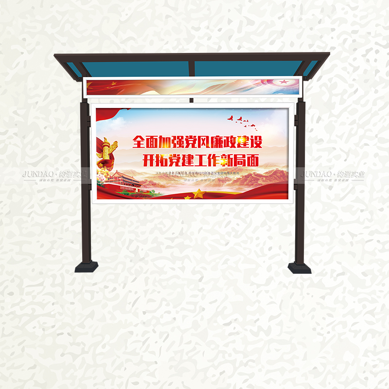 河南钧道实业有限公司主营:铝合金户外带雨棚宣传栏、垃圾分类亭、挂墙报栏、移动展架、广告铝框、可折叠海报架、灯杆道旗、带造型灯杆灯箱、标识牌、花草牌等成品。