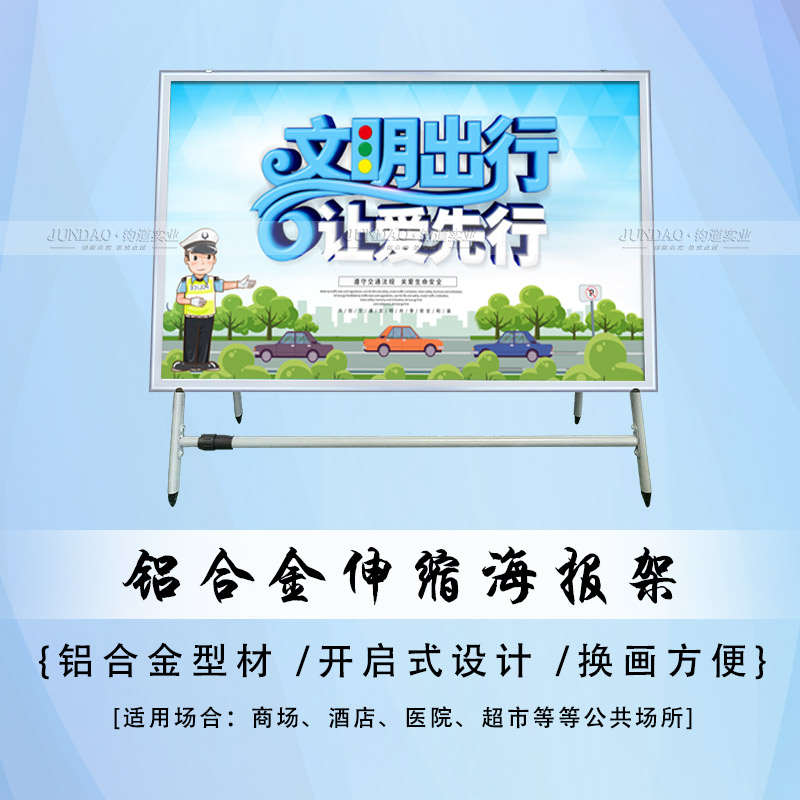 7、实用性:铝型材海报架密度小,重量轻,同一长度同一断面的型材仅为钢的1/3,具有便携轻巧实用性。