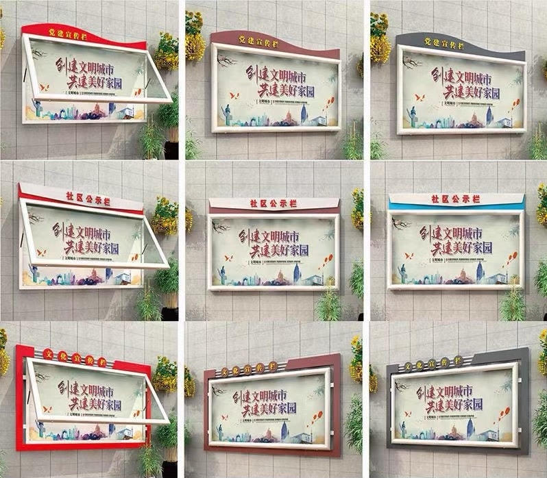 挂墙设计打破了传统立式宣传栏的空间限制,无论是室内走廊、大厅墙面,还是户外社区入口、校园通道,都能精准嵌入,适配不同场景的传播需求: