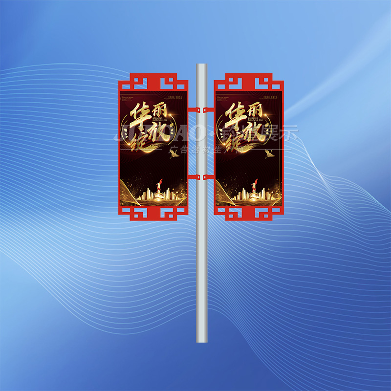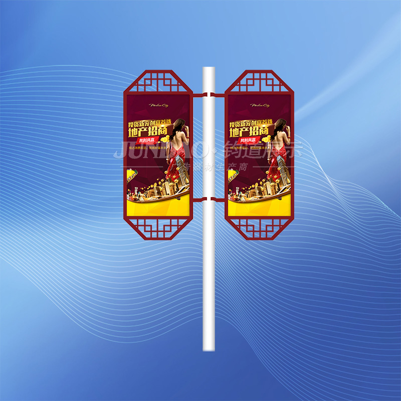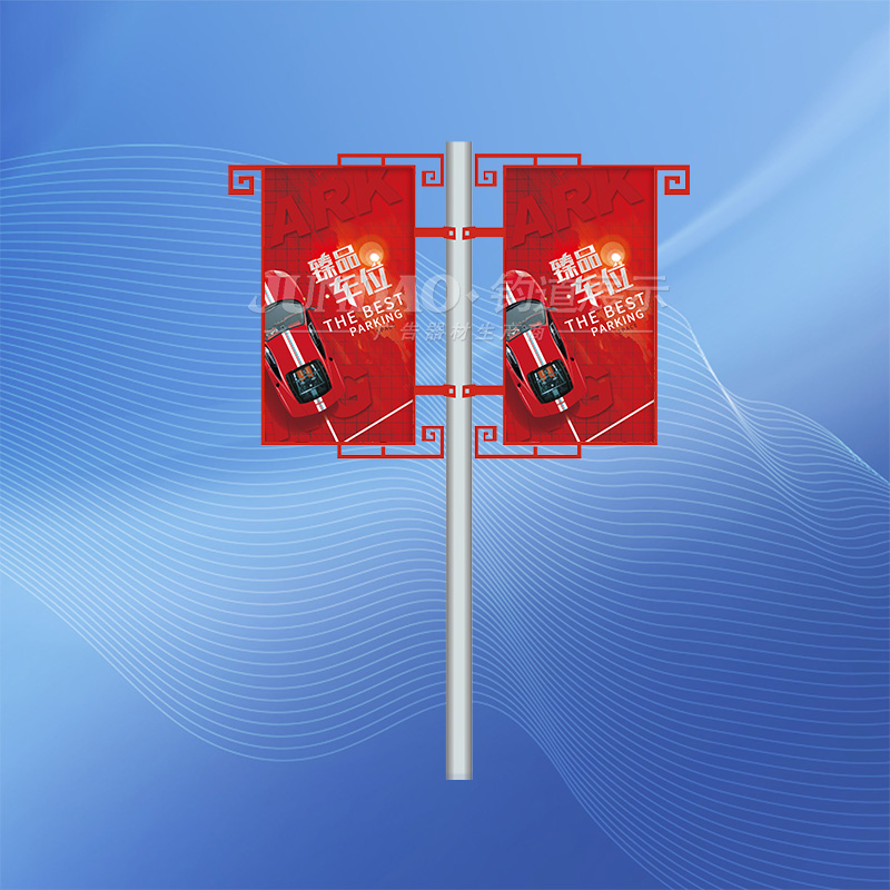 铝合金灯杆道旗架以的宣传力度,动感直观,整体感强的效果迅速的在市场中得到众多客户的肯定。同时,铝合金灯杆道旗架还具备造价低、外型美观、安装容易、抗风性强、可重复利用、可更换画面等诸多优势。