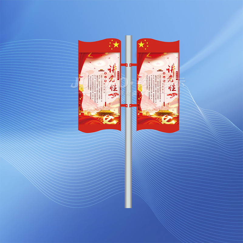 然后就是道旗支架。灯杆道旗是临时加固在灯杆或柱形载体上的,一般灯杆道旗的支架是借用电力系统中横担的做法,但由于灯杆道旗比电力系统的要求低得多,所以在材质和做工上精简了许多。只需要灯杆道旗支架能达到良好的紧固性,以及抗风力与抗拉力就行了。灯杆道旗支架没有严格的要求,却是很关键的部位,所以选材一定要注意。现在市面上有定型的灯杆道旗横担支架,由于主载体不能统一所以实用性不好说,但他是个不错的产品。