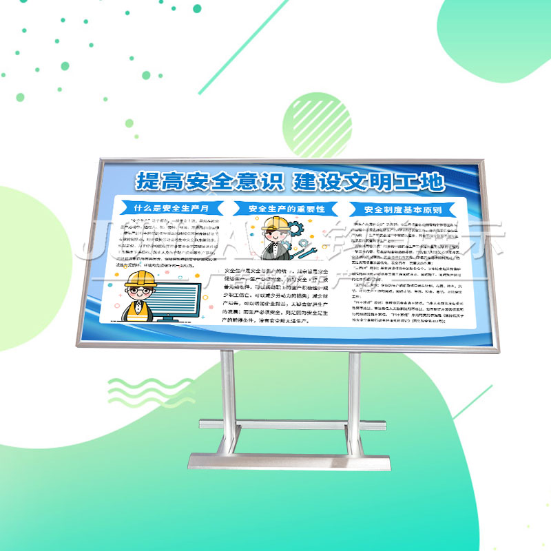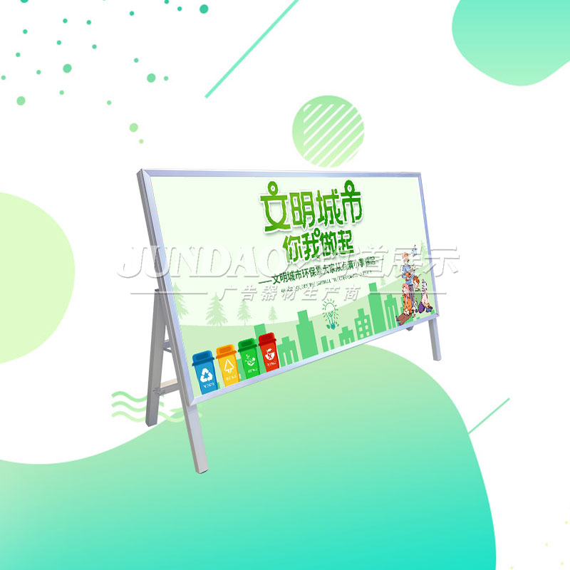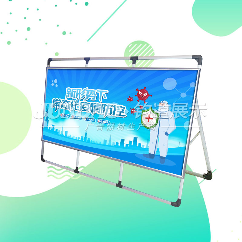 海报架的边框一般用铝合金材质制成,因为铝合金的比较便携、不易损坏、可多次循环使用。面板多用PVC材料,也有用KT板或者雪弗板等其他材料做的。