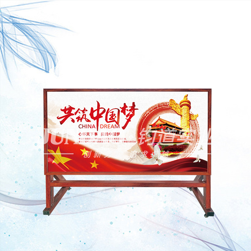 下面先从移动报栏的尺寸及组成上说起:移动报栏的尺寸通常为120*240cm,易可订做其它尺寸。由小立柱、移动报栏料、PVC板及铝合金框体四部分组成,下面一起来看下吧!移动报栏优势及特征: