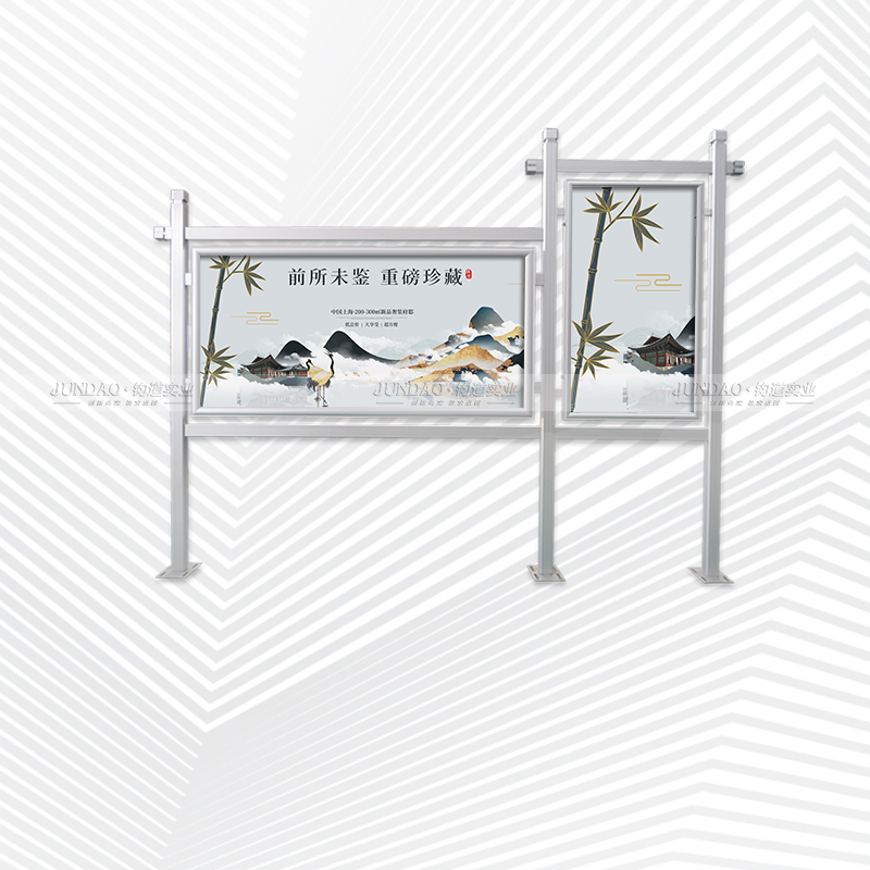 河南钧道实业有限公司主营:铝合金户外带雨棚宣传栏、垃圾分类亭、挂墙报栏、移动展架、广告铝框、可折叠海报架、灯杆道旗、带造型灯杆灯箱、标识牌、花草牌等成品。